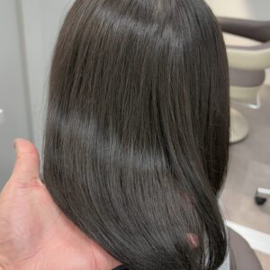 根本が3〜4センチくらいが新生部で、それ以外が8レベルくらいのブラウン。そして今回、仮に8レベルくらいの仕上がりを想定します。