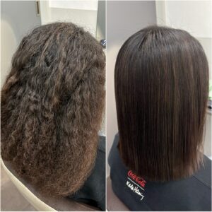 縮毛矯正をかけているけどデジパして失敗しチリチリのジリジリになってしまった髪を、優しいストレートパーマ、いわゆり、上白石萌歌、あ、間違えた、髪質改善ストレートパーマでサラサラストレートヘアにしましたのご紹介します。